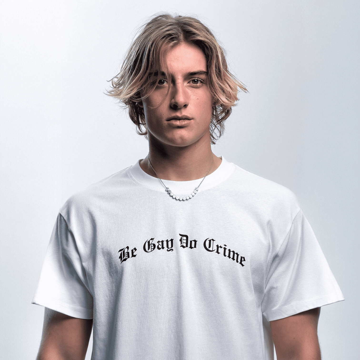 Classic “Be Gay Do Crime” tee cut from 230gsm cotton in our standard fit.