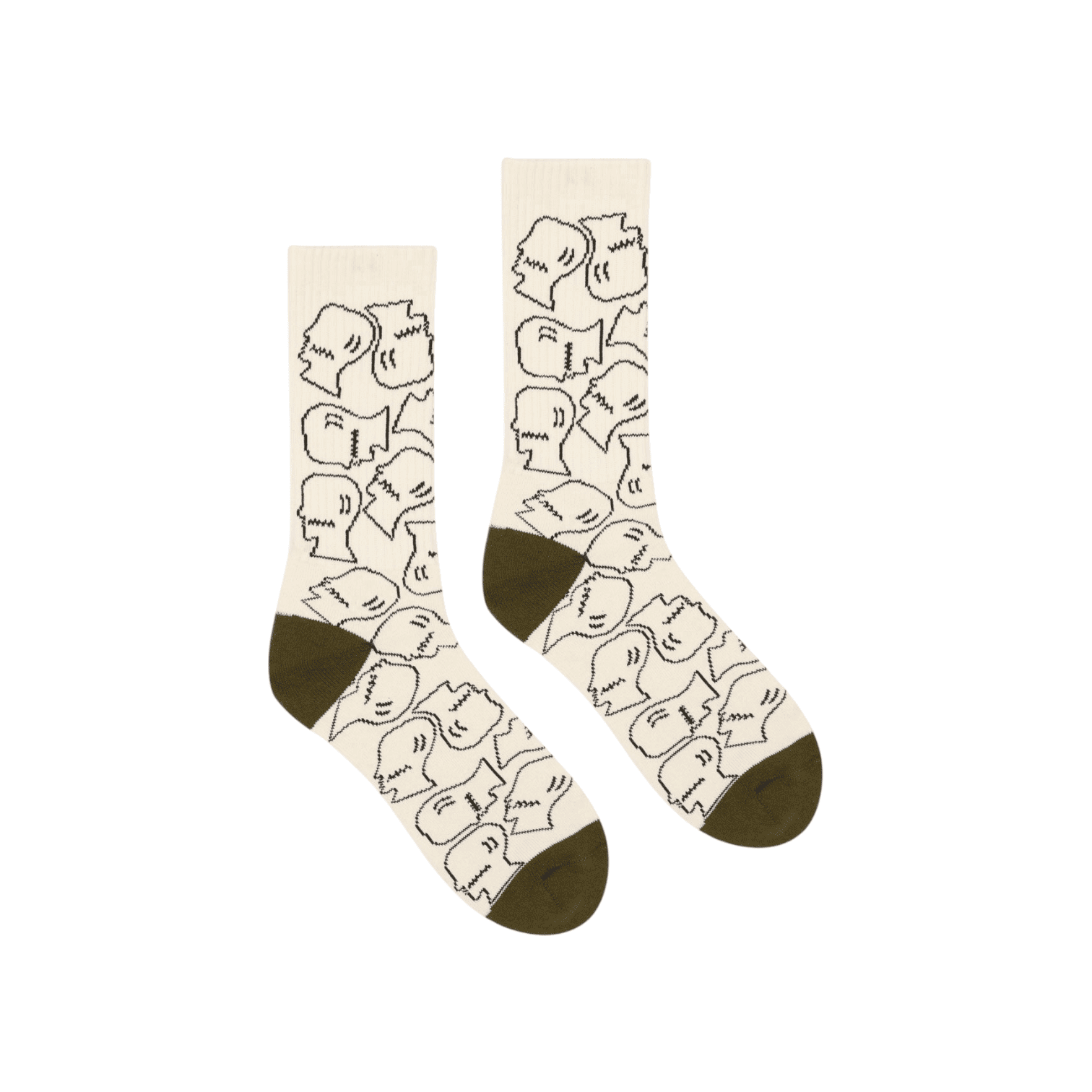 Our classic cotton knit socks in a cream logohead pattern with contrast toe and heel.