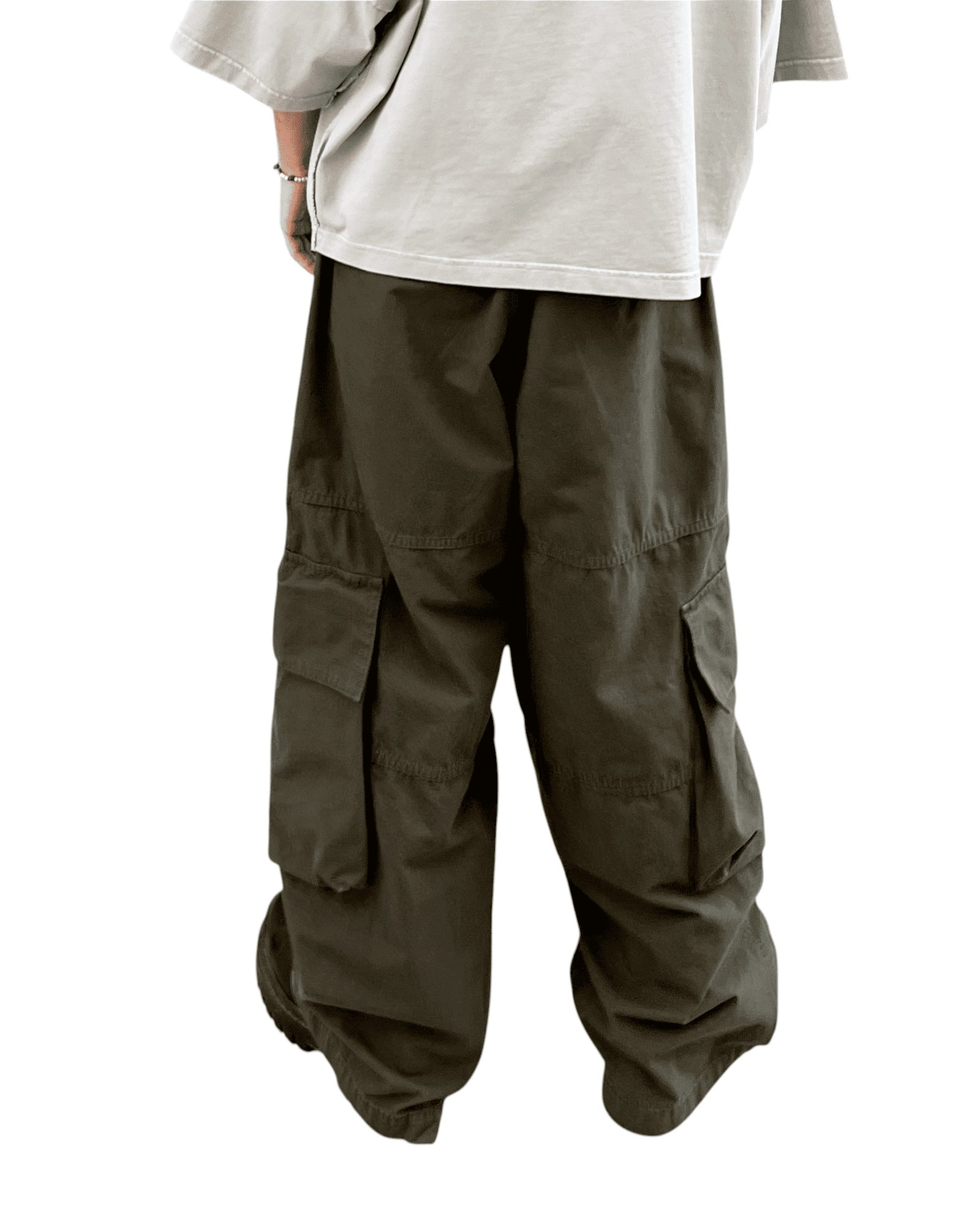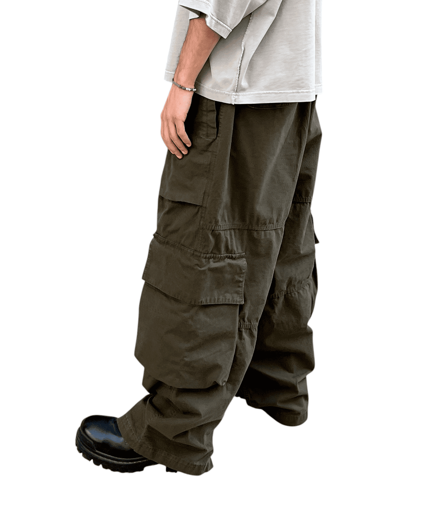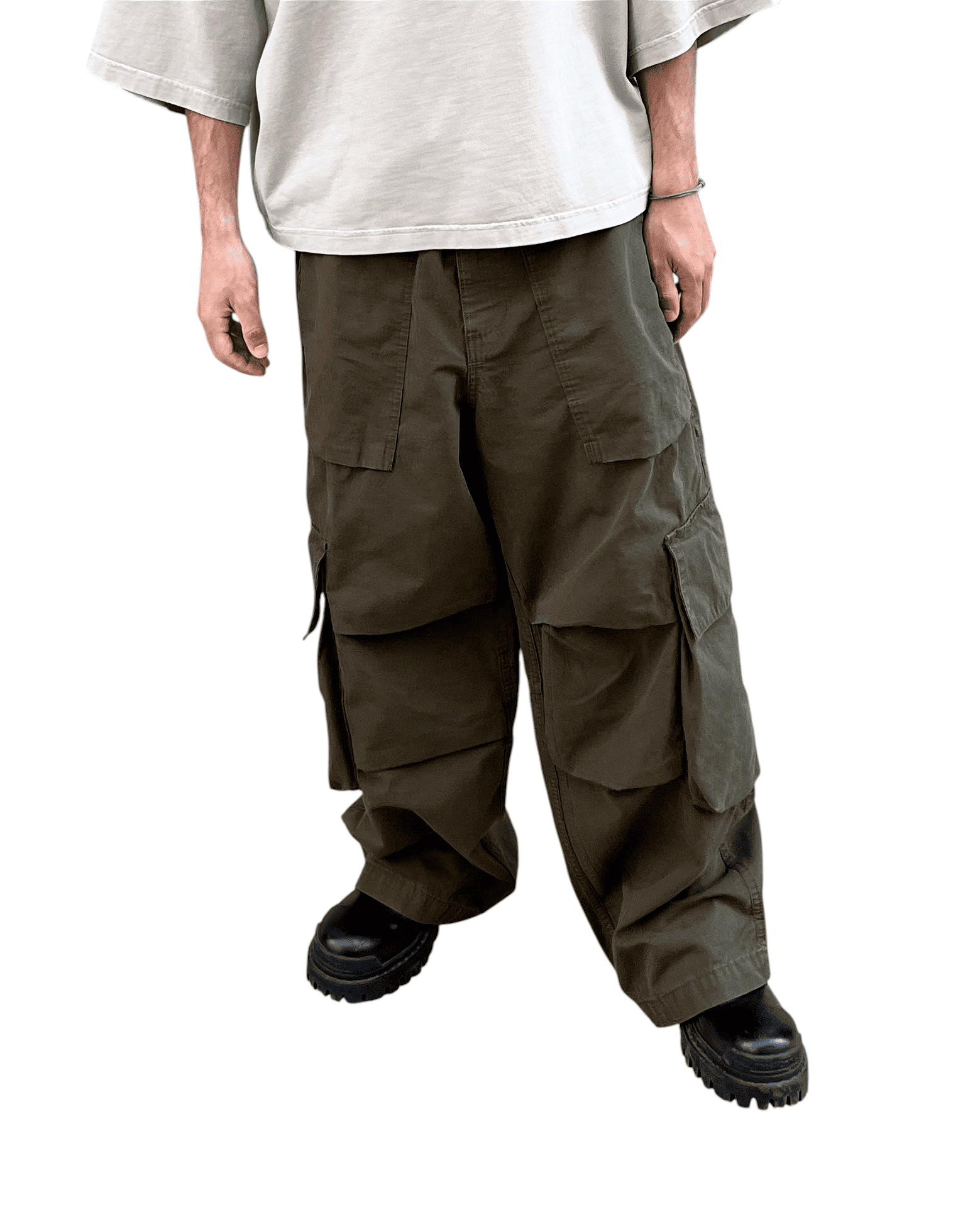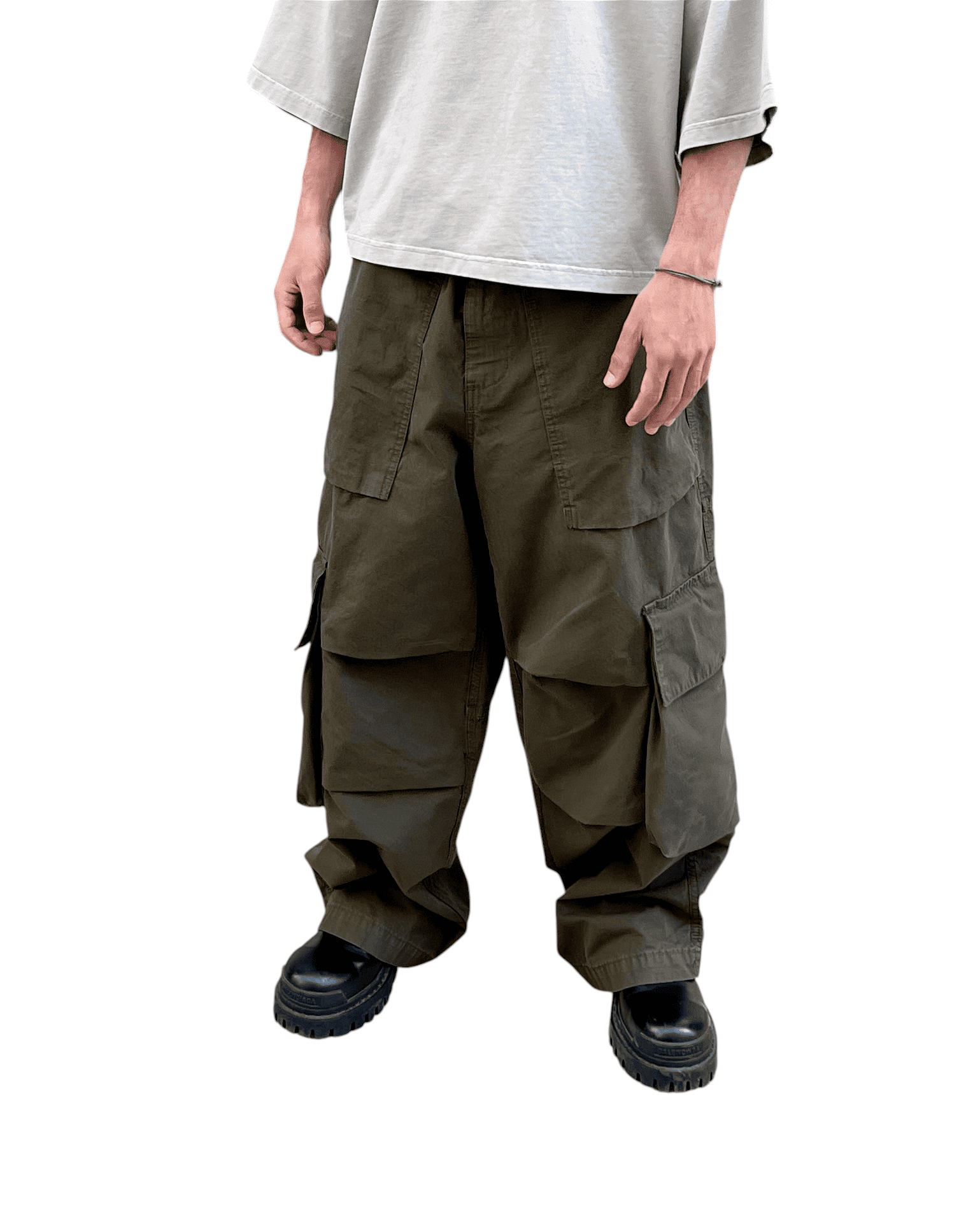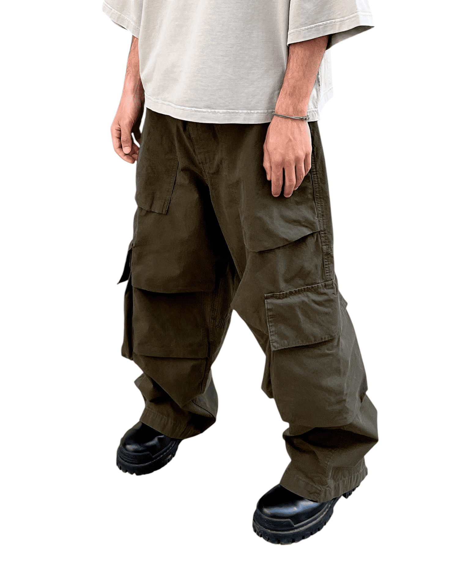 Stay Human On Earth - Ripstop Cargo Wide Leg Trousers Olive Night