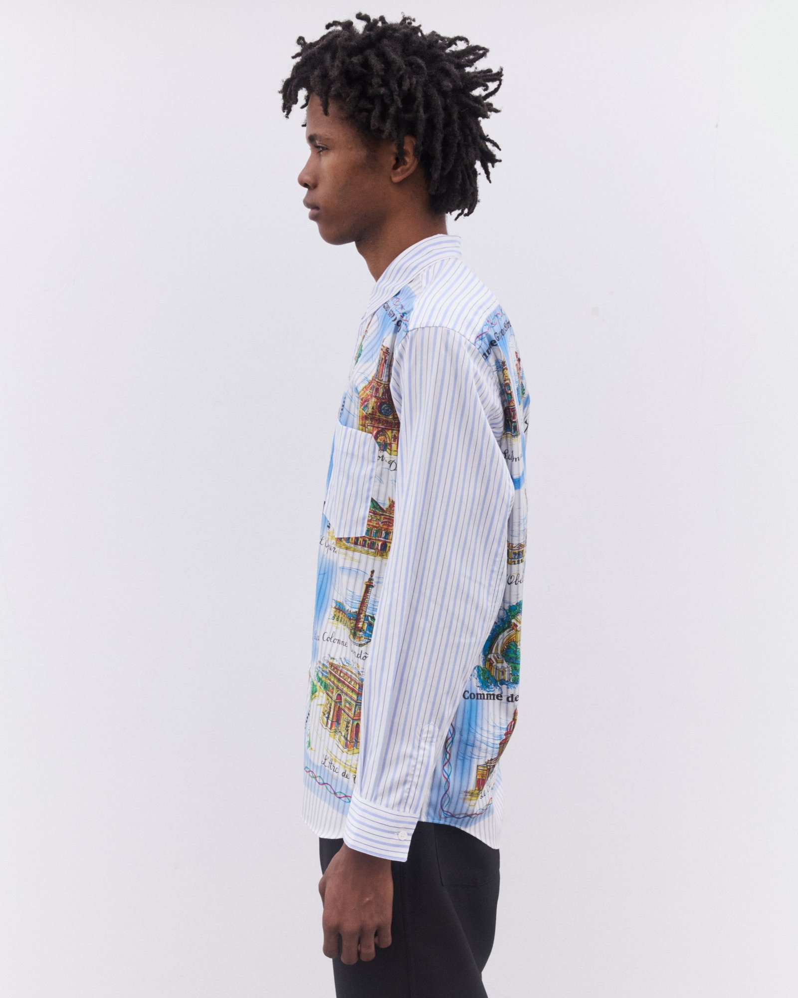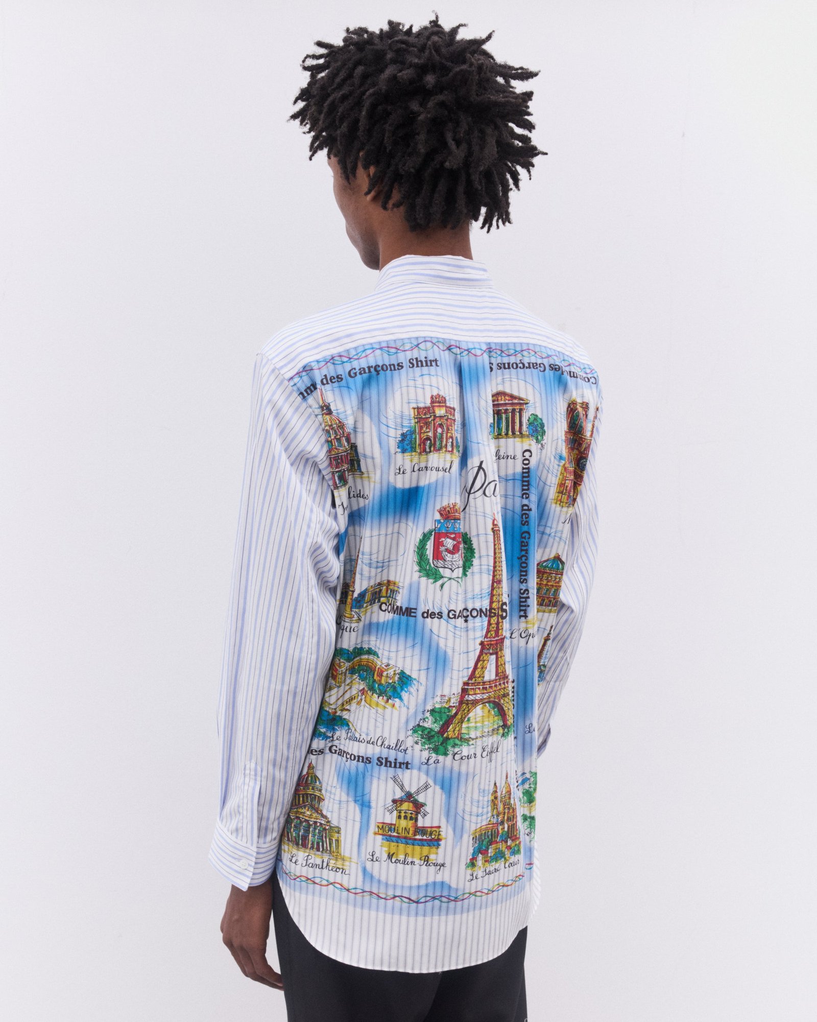 Comme des Garçons is a Japanese label founded by Rei Kawakubo in 1973. Kawakubo is renowned for her avant-garde designs, radical use of proportion and multitude of references, and has had a significant impact on the fashion industry. The label comprises multiple diffusion lines, including Shirt, a line that reworks and deconstructs wardrobe essentials such as the button-down shirt through juxtaposing materials, patterns and offbeat details.