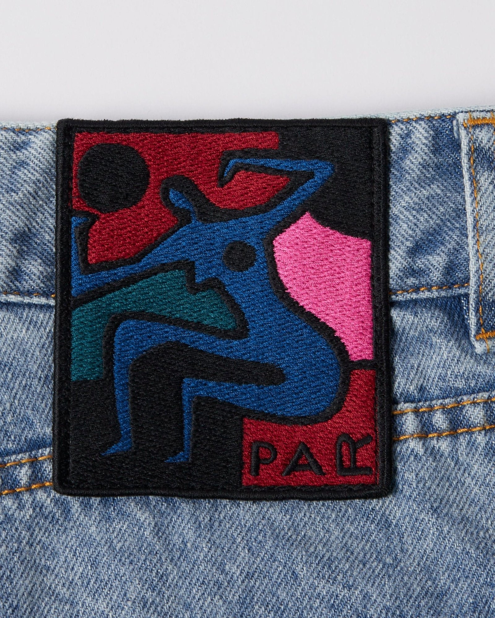 • Embroidered patch at the waistband