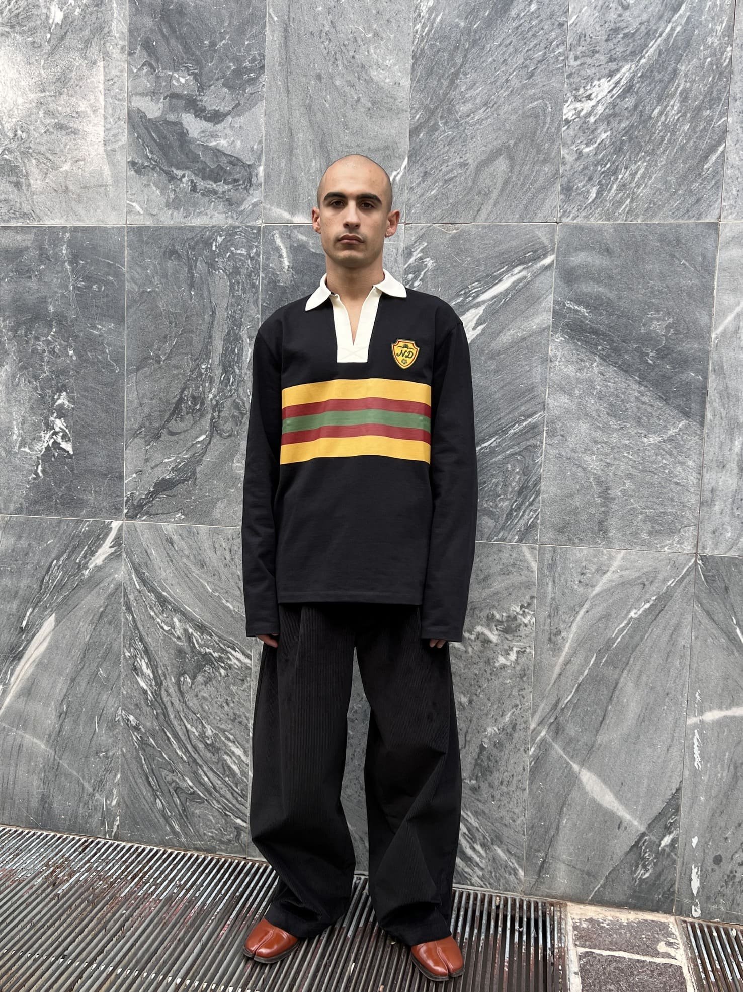 Community, craftsmanship and culture lie at the heart of Nicholas Daley’s work. Having graduated from Central Saint Martins in 2013, the London-based designer launched his eponymous brand in 2015. Embedded in his lineage, his practise intertwines personal narrative with wider black British and diasporic themes, incorporating tradition, authenticity, and diversity.